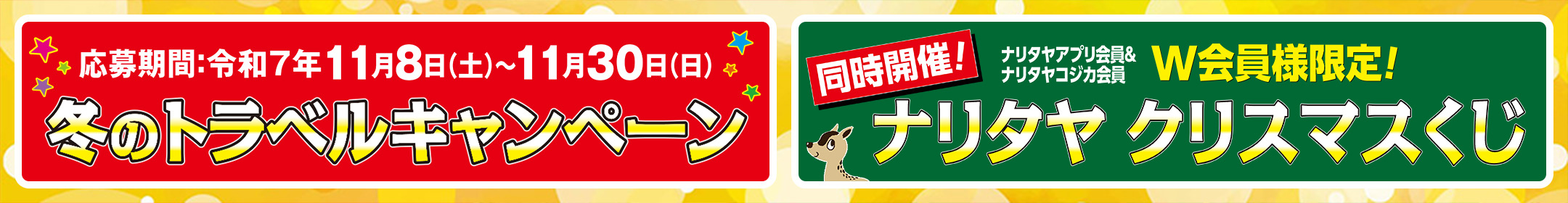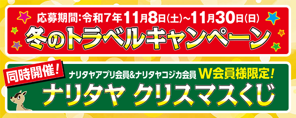 冬のトラベルキャンペーン & W会員様限定ナリタヤクリスマスくじが開催中です!